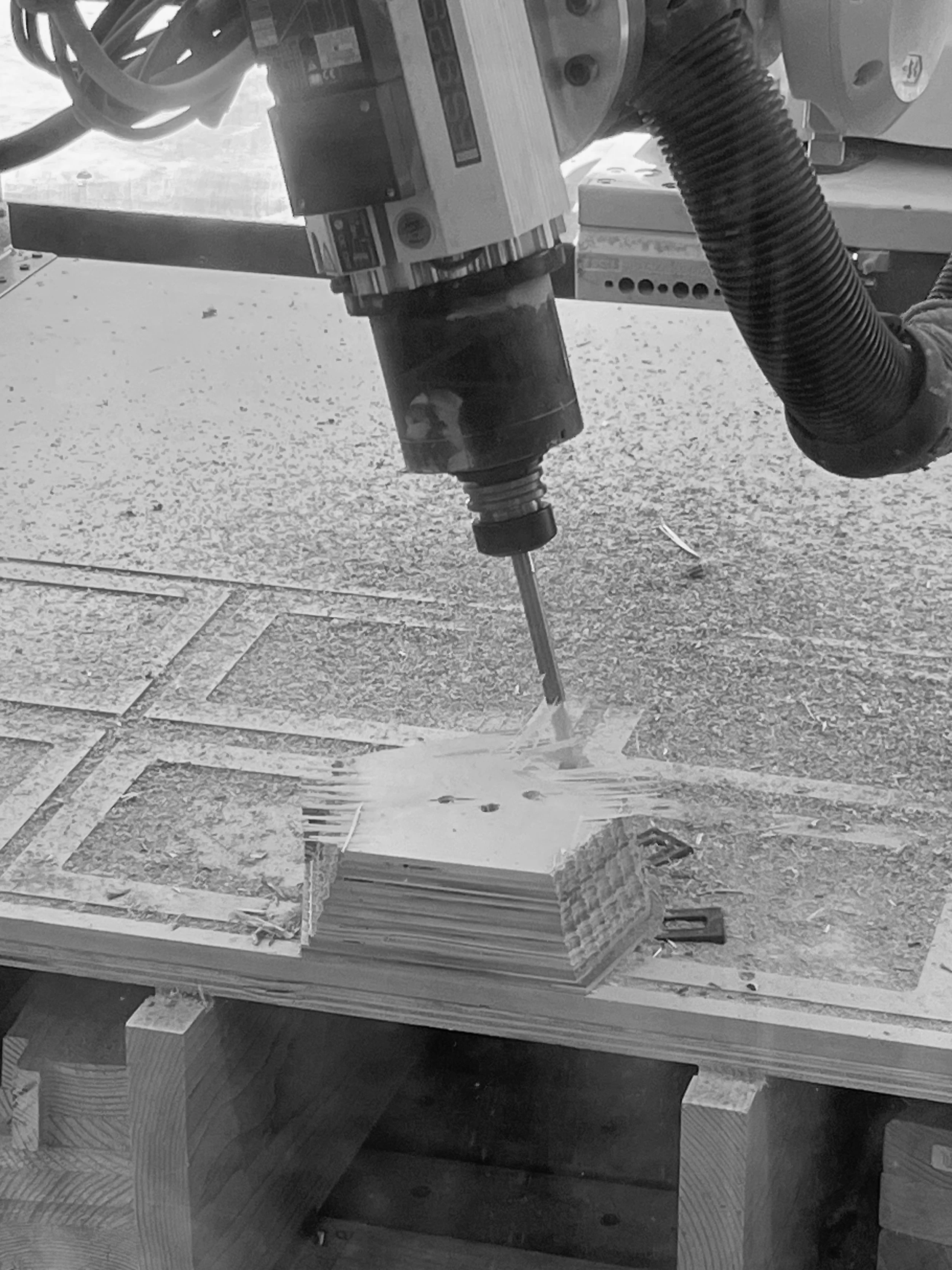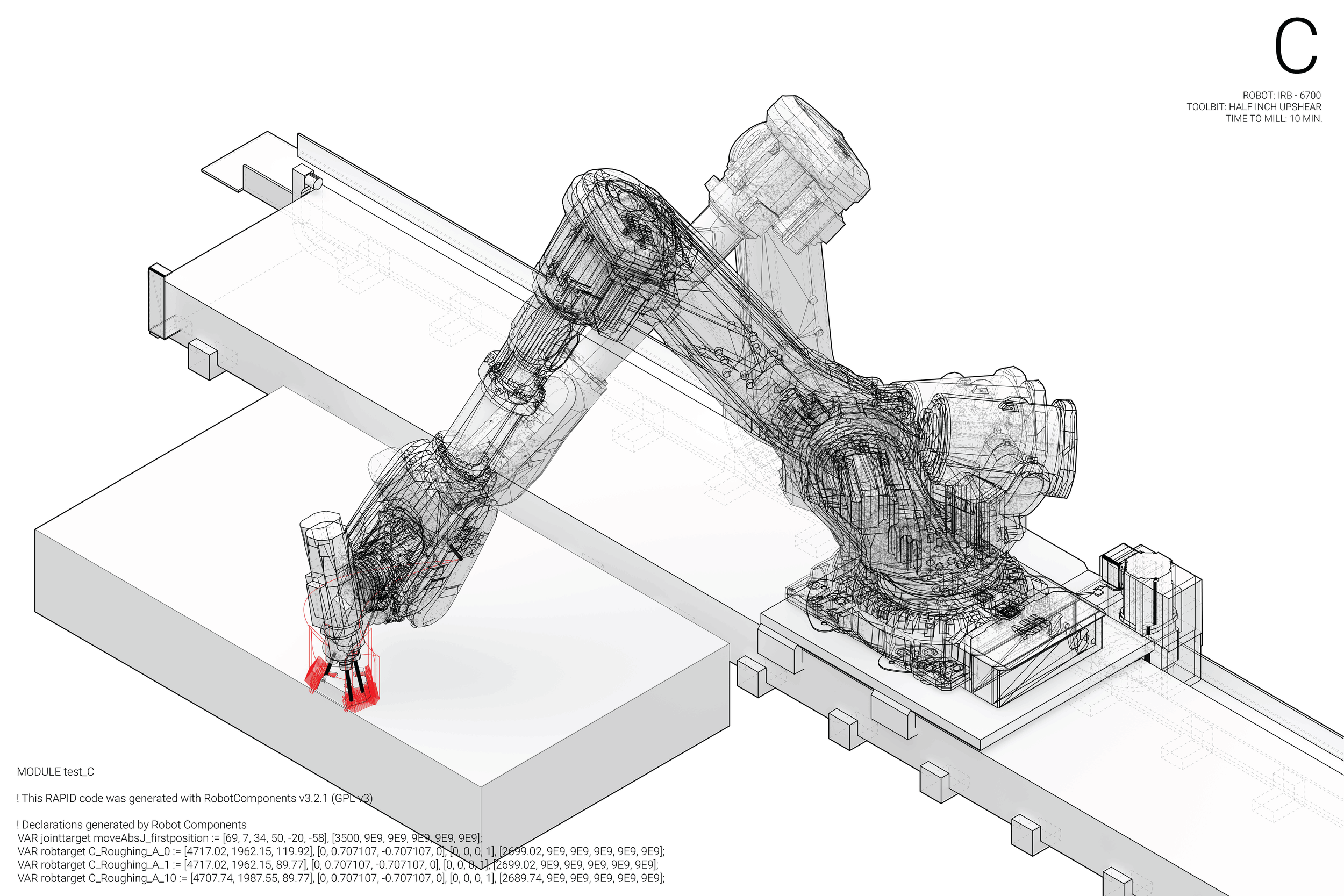 Robotic milling involved the creation of a parametric script, from which the desired output surface could accurately and repeatedly be milled.