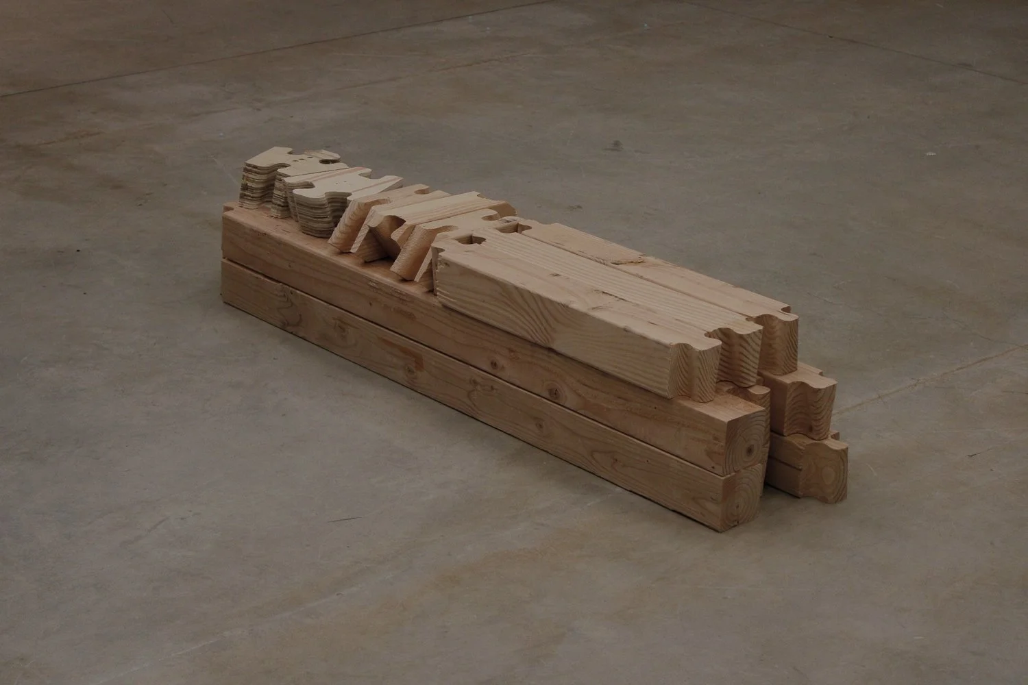 Joints and linear members, composed of CLT and glue laminated timber respectively, are designed to be robotically milled off-site, then assembled with mallets.